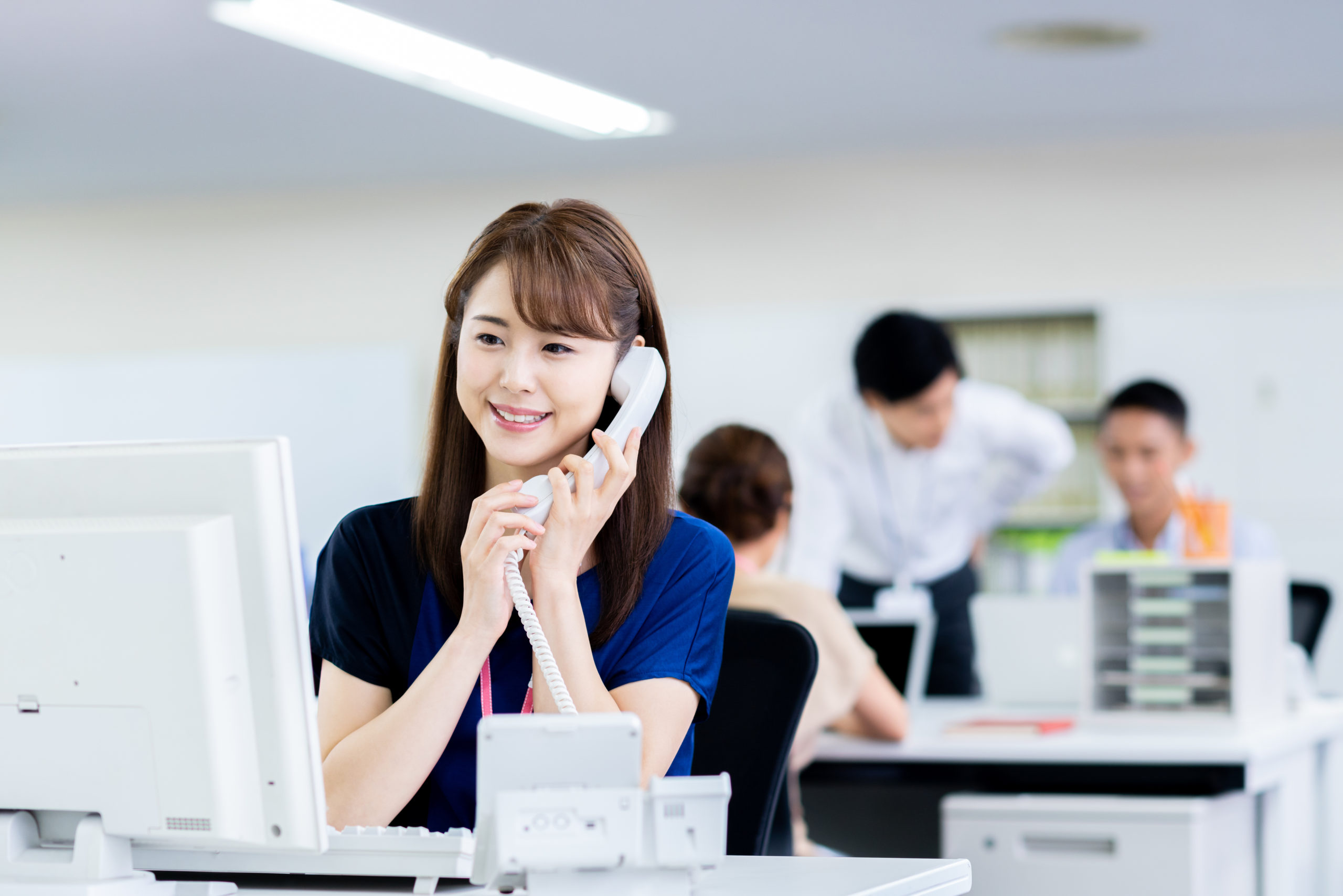 お客様への応対、ご案内が主な業務となり、その他電話応対や応接室の予約や管理等も行います。